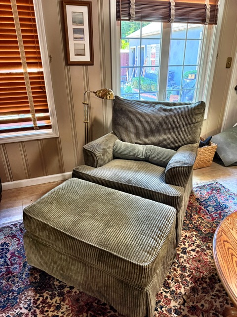- Green love seat with ottoman