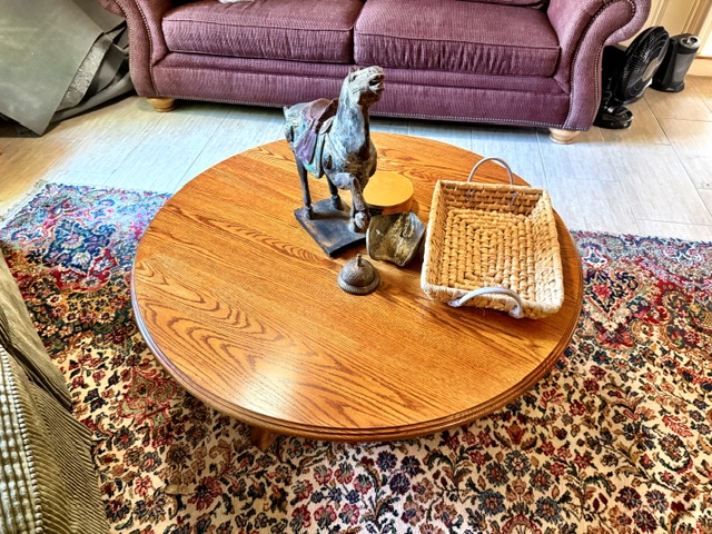 - Round oak coffee table