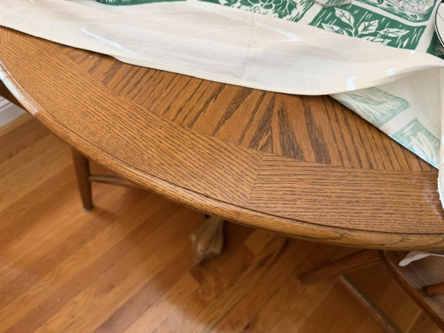 - Oak round kitchen table with 1 leaf